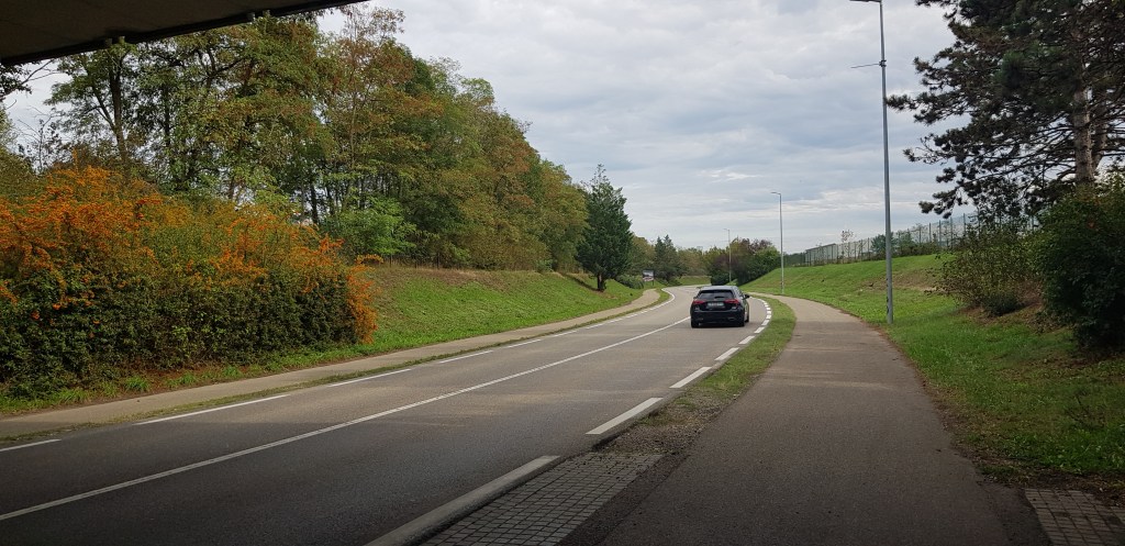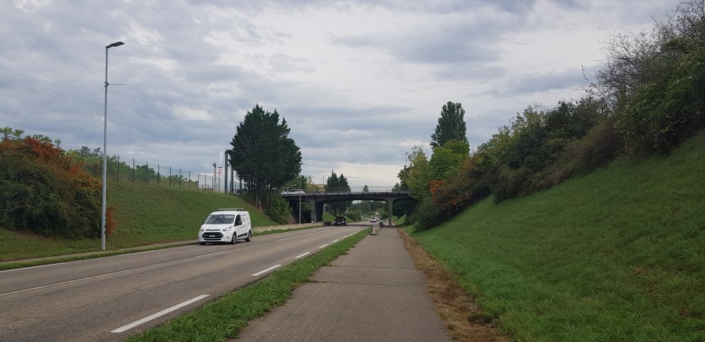 If you don’t find the cycle path, you will be on a massive highway that you really, really don’t want to be cycling on (especially at night). You want to follow the below instructions whether your end destination is France, Switzerland or Germany.